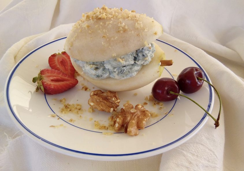 Zutaten für 2 Personen: 2 große Birnen Saft einer halben Zitrone Ca. 25g mild- weichen Gorgonzola 2 EL geschlagenes Obers Ca. 25g Walnüsse gemahlen Ein paar ganze Walnusshälften und Früchte der Saison…11. Februar 2022 -