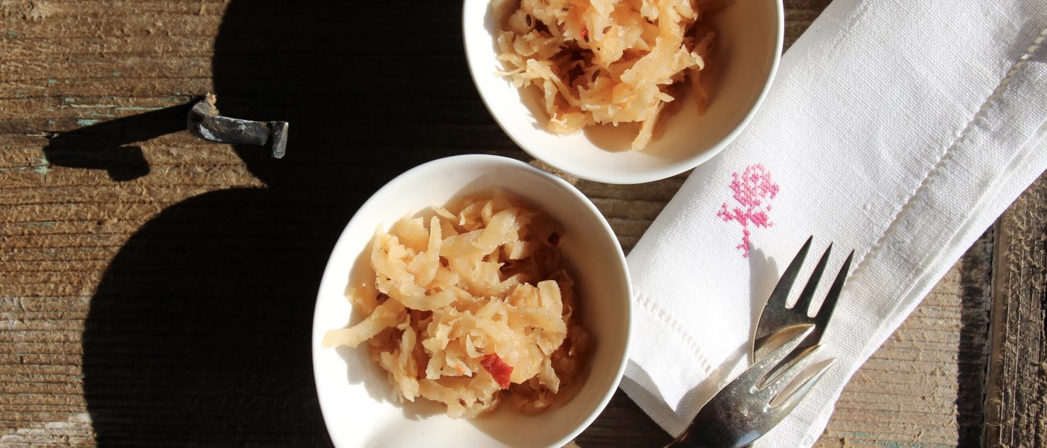 Das Gärgefäß an einem kühlen Ort ohne direkte Sonne 5- 10 Tage stehen lassen. Tägliche Kontrolle ist notwendig um zu sehen, ob noch genügend Lake auf dem Gemüse steht. Notfalls alles nochmals hinunter pressen.
