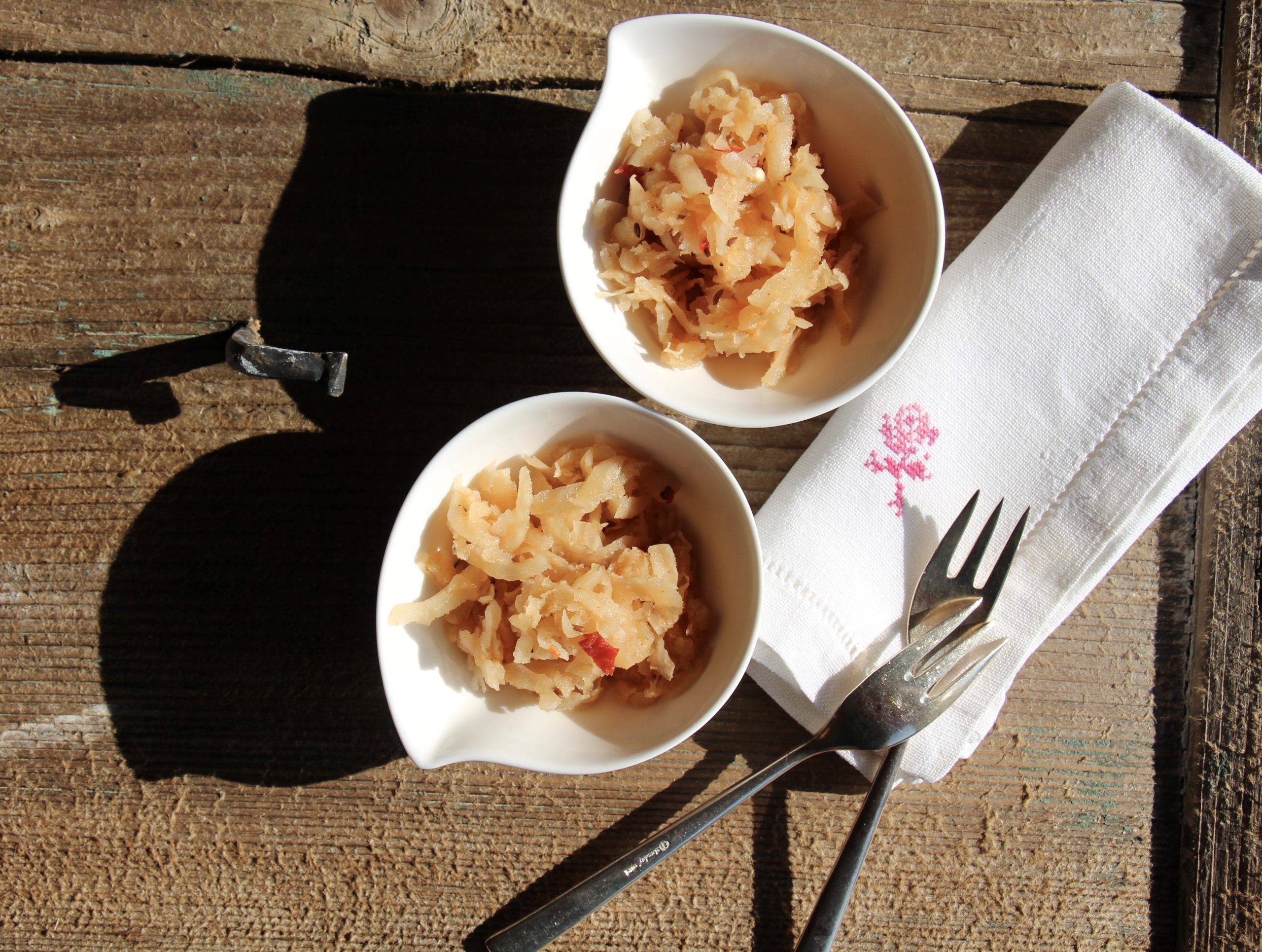 Die fertige Sellerie in kleine Gläser abfüllen, gut hineinpressen und die übrige Lake darüber gießen. Die verschlossenen Gläser sind im Kühlschrank bis zu einem Jahr haltbar.